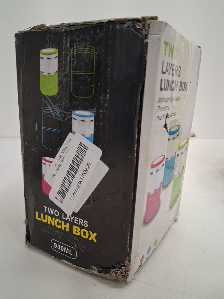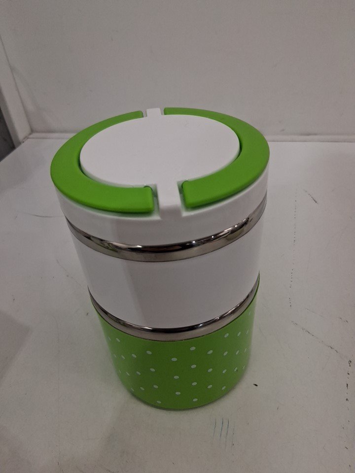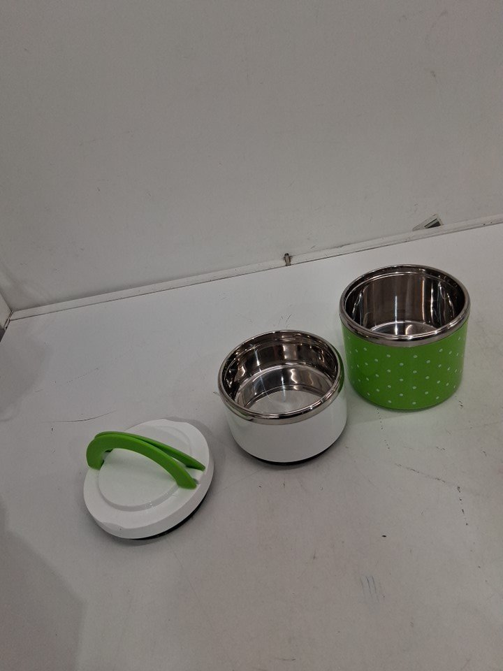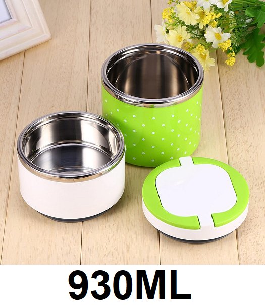 2-Layer Stainless Steel Insulated Lunch Box with Handles - 930ML - GREEN / WHITE