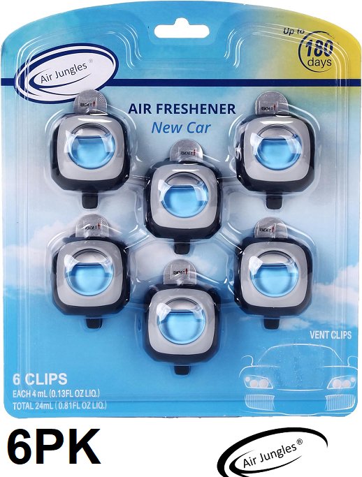 6pk Air Jungles Car Air Freshener Clip - New Car Scent - blue