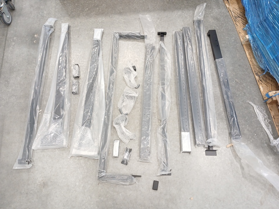 The metal has some scuffs on its corners. Additional hardware is required. This item is missing two of its bike hooks.