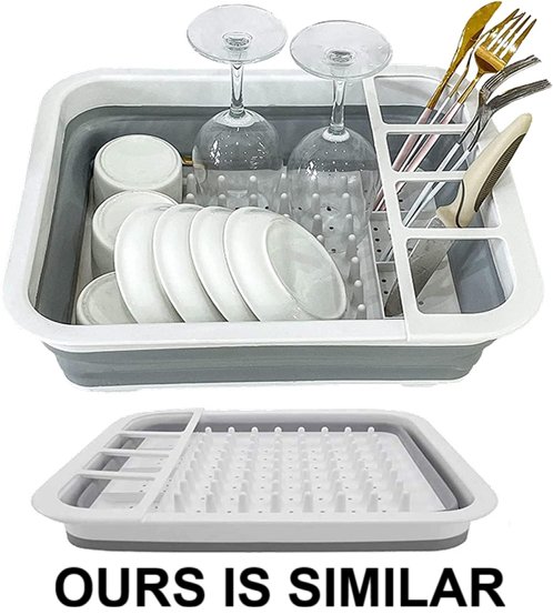 Thanstar Collapsible Drying Dish Rack with plug drain - White/Grey (Model:
