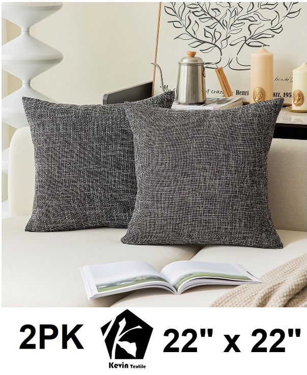 2pk kevin textiles decorative square Lined Linen pillowcase - 22" x 22" - black/white/grey