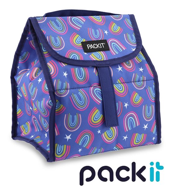 packit freezable lunch bag - 8.5" x 6.2" x 9.7" - blue/rainbow