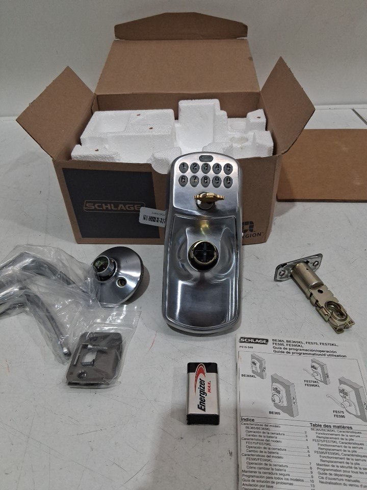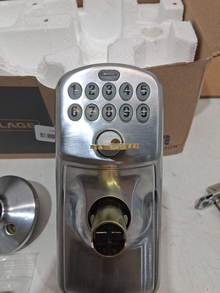 Schlage Plymouth Keypad Entry with Auto-Lock & Elan Levers - Brushed Chrome (Model: FE575 PLY 626 ELA)