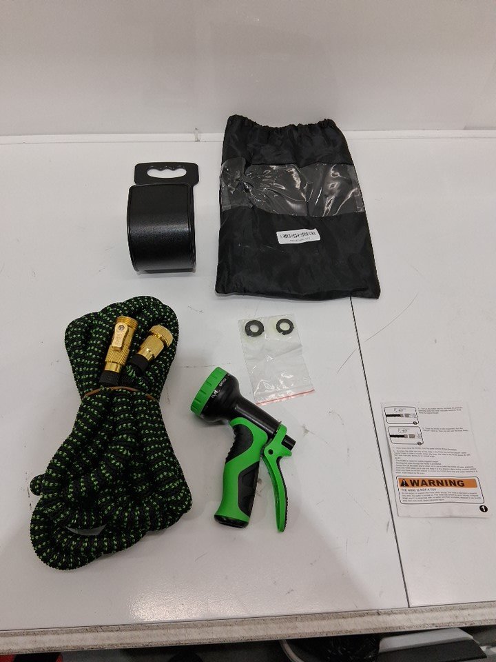 EXPANDABLE FLEXIBLE GARDEN HOSE with hose hanger and thumb control nozzle - 20FT - green/BLACK hose