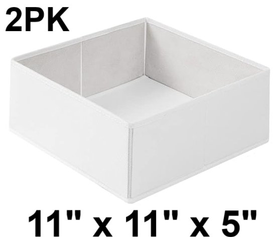 2PK Stero Fabric Foldable Drawer Organizer Storage Basket - 11" x 11" x 5" - White