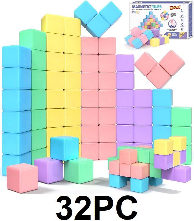 32PCS Magnetic Building Blocks - 3 years and up - assorted colours