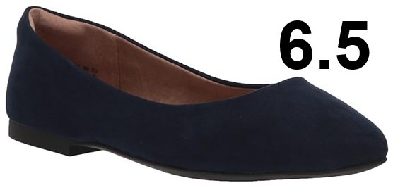 WOMENS' AMAZON ESSENTIALS POINTED-TOE BALLET FLAT SHOE - 6.5 WIDE - navy