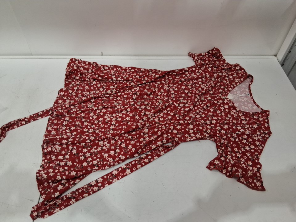 WOMENS WNEEDU SHORT buttoned SPRING DRESS WITH TIES - MEDIUM - FLORAL/RED