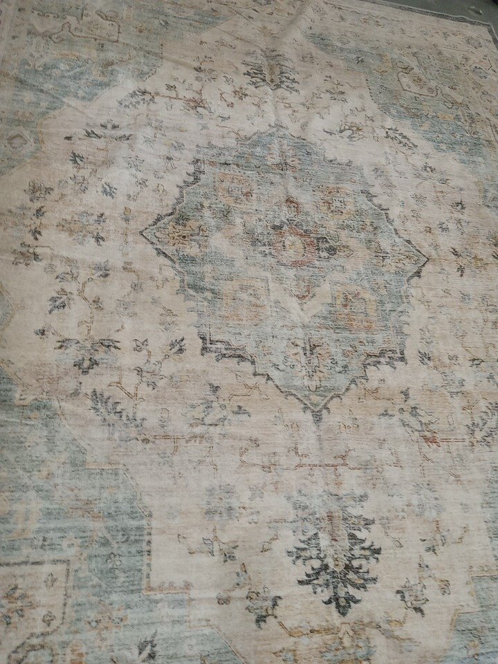 There are dirt marks, stains present from previous use. There is some fraying present as well. *GENERIC CONDITION STATEMENT* PLEASE BE AWARE THAT THE STOCK IMAGE USED MAY NOT 100% RESEMBLE THE COLOUR OF THE ITEM BEING SOLD. The images used and sizes given are taken from the online retailer. Rug has been inspected by our staff and laid out on our warehouse floor for full inspection and photos. Due to this nature of handling there might be light dirt or dust on the item from handling or storage in our facility at time of pick up.