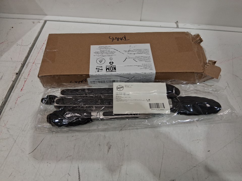 3pk The Original Popco Tongs, Set Heavy Duty, Stainless Steel BBQ and Kitchen Tongs with Silicone Tips - 12" / 9" / 3" - silver / black