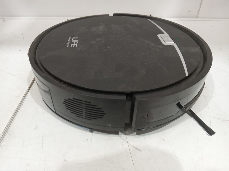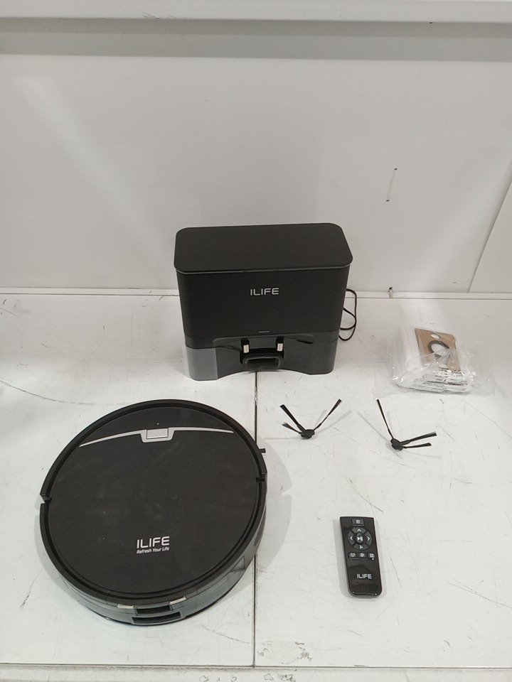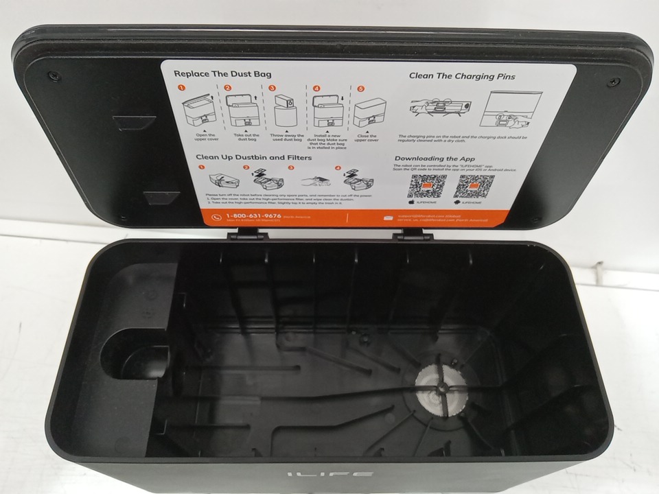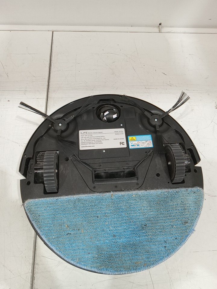There are dirt residue/stains on the mop pad and side brush, there are scratch marks on the sides and top from previous use. Recommended to be cleaned before use. Tested for power and functionality through remote. (Please see photos)