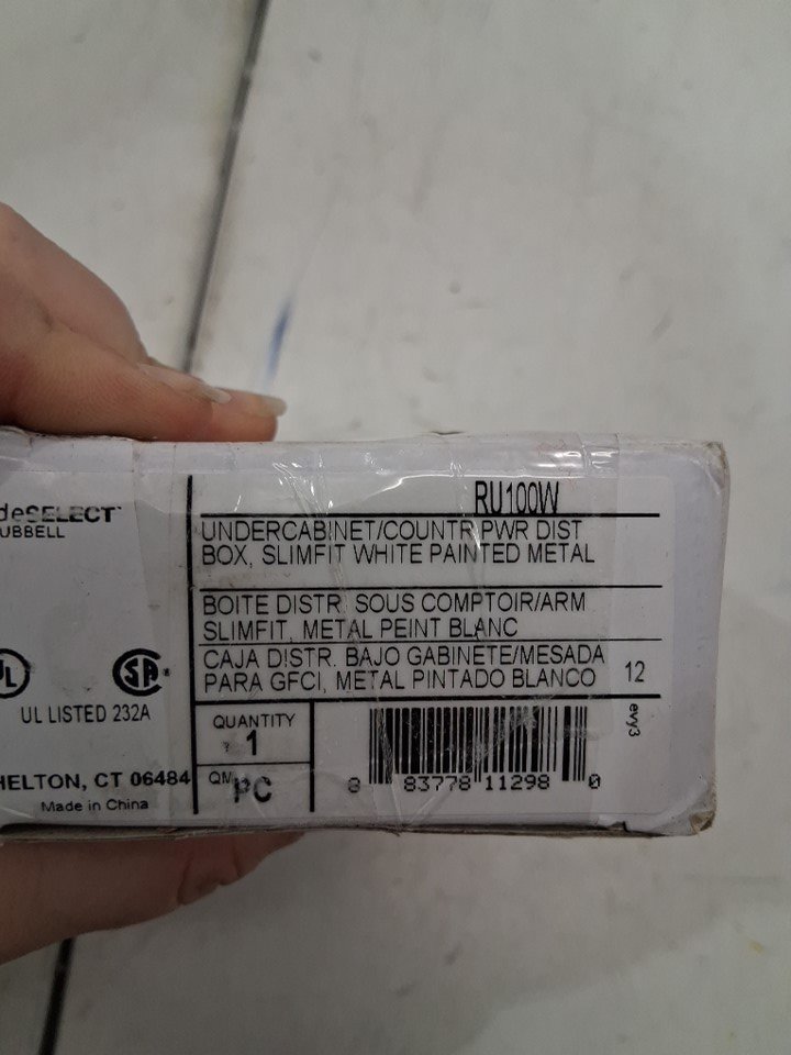 TradeSelect by hubbell wiring system under cabinet/counter power distribution slim fit box - 5.57" x 3.4" x 1.5" - White (model: ru100w)