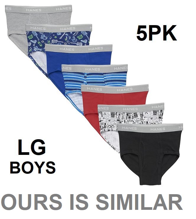 5PK boys hanes tagless printed briefs - large - assorted colors
