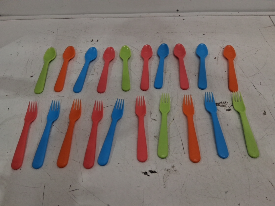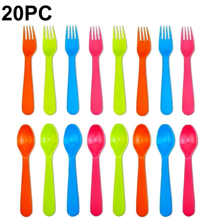 20PC Jawbush Plastic Forks And Spoons Flatware Utensils For Toddlers Kids - Multicolor