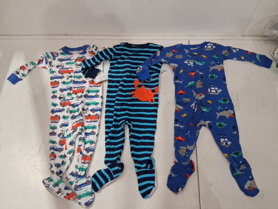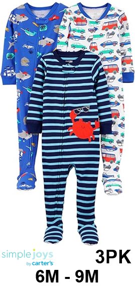 3PK boys simple joys by carter's snug fir footed cotton pajamas - 6m - 9m - Crab/Sea Creatures/Cars