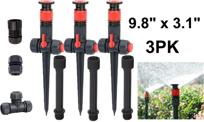 3pk Eden multi-adjustable Garden Sprinkler with Extension Set 9.8" x 3.1" -black/red (model: 96093edamz)