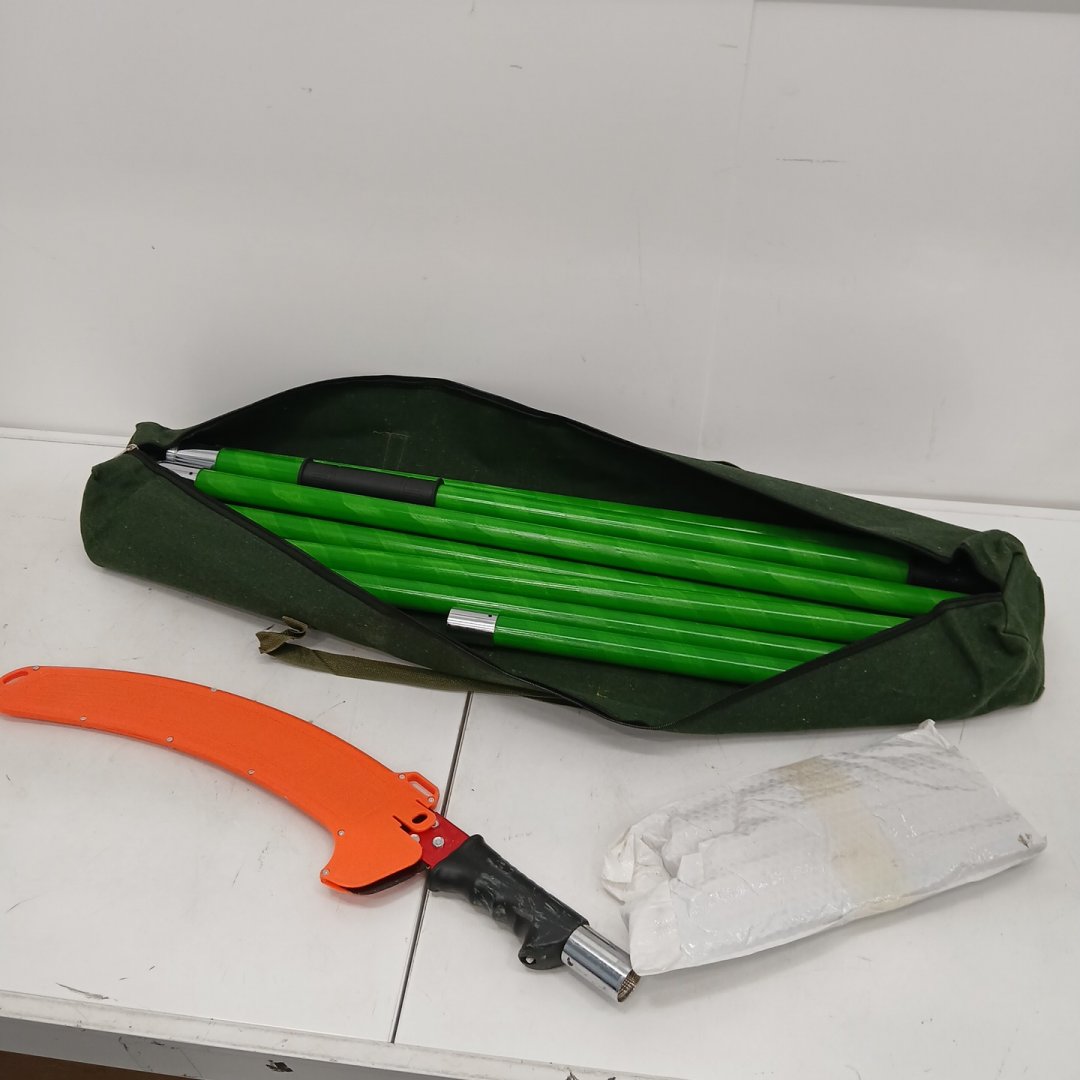 Item has signs of use on both the poles & blade - only one blade arrived with this item and it does not appear to have the scissor mechanism.
