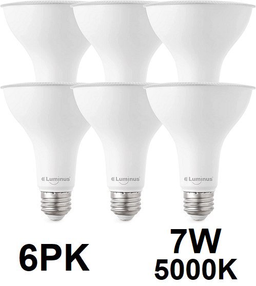 6PK LUMINUS DIMMABLE FLOOD LIGHT LIGHT BULB - 7W - 5000K/DAYLIGHT (MODEL: PLYC3569)