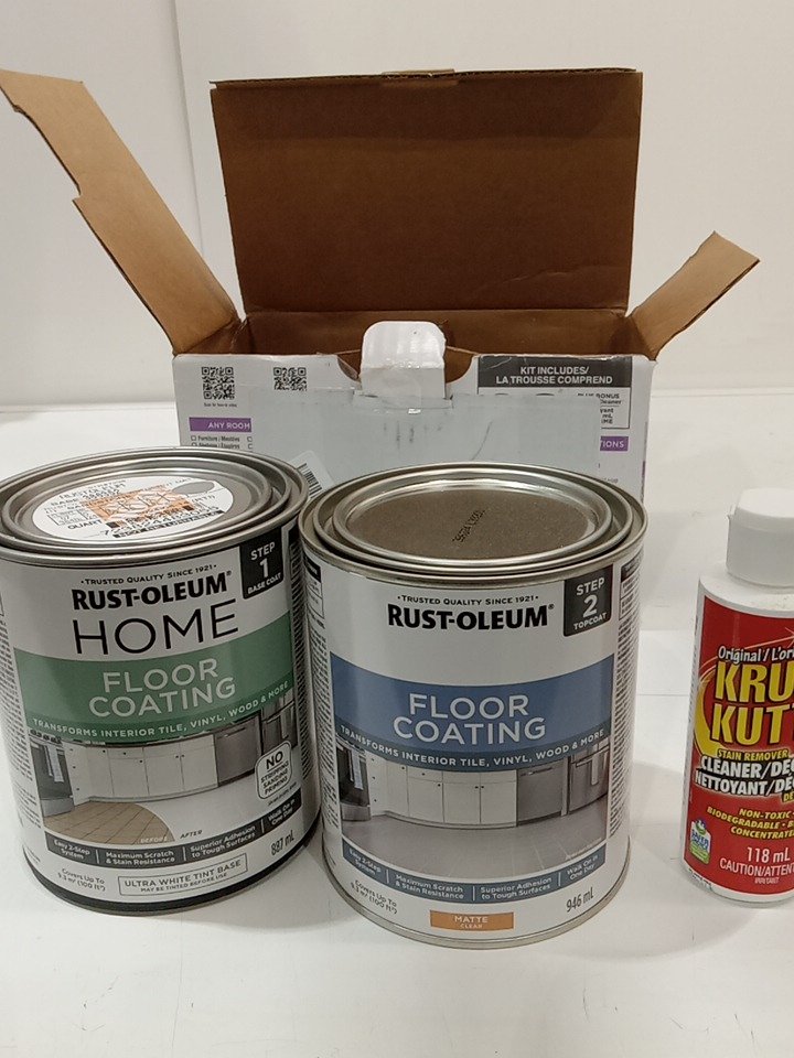 Both cans still looks sealed. Repackaged into a cabinet coating box.