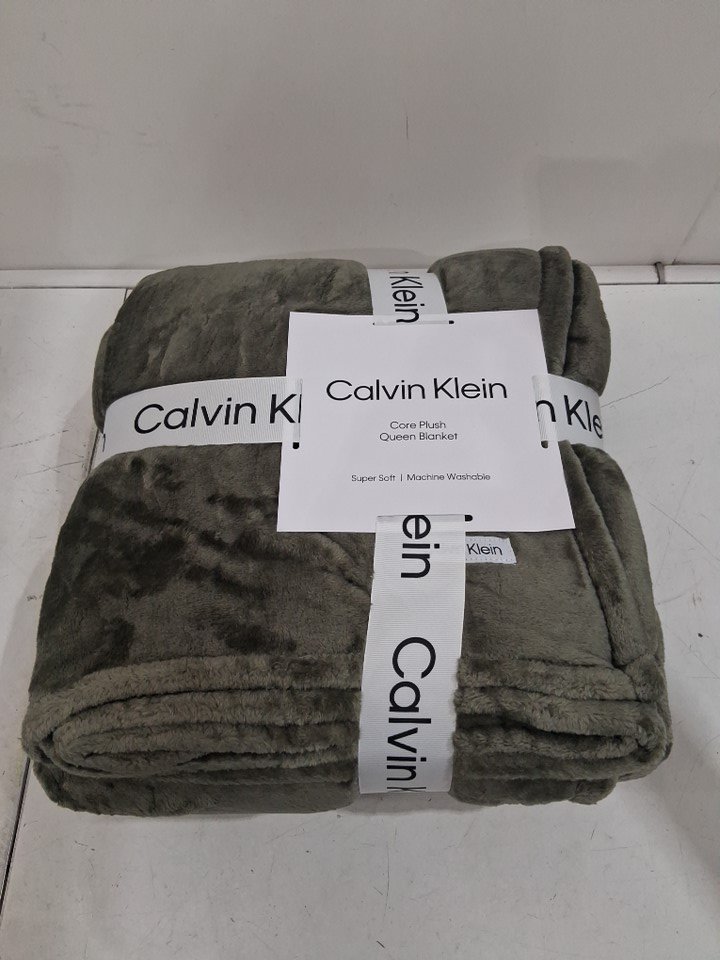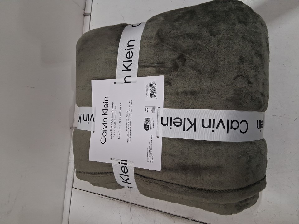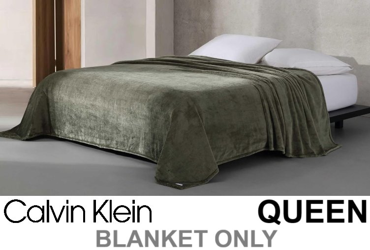 Calvin Klein soft Core Plush Blanket - queen - olive green