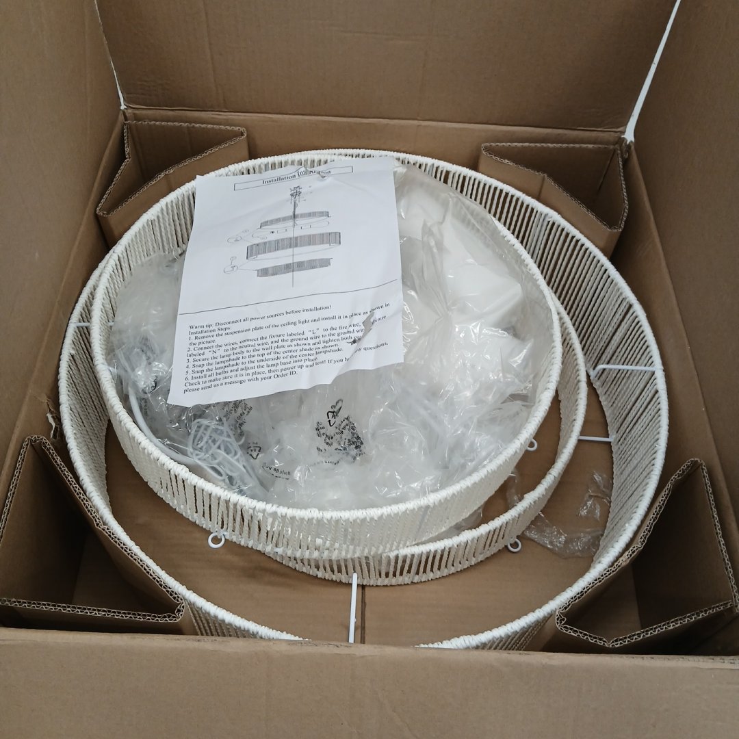 3-TIER BOHO RATTAN WOVEN RUSTIC LIGHT FIXTURE DRUM CHANDLIER - WHITE(MODEL: QT-Q7W)