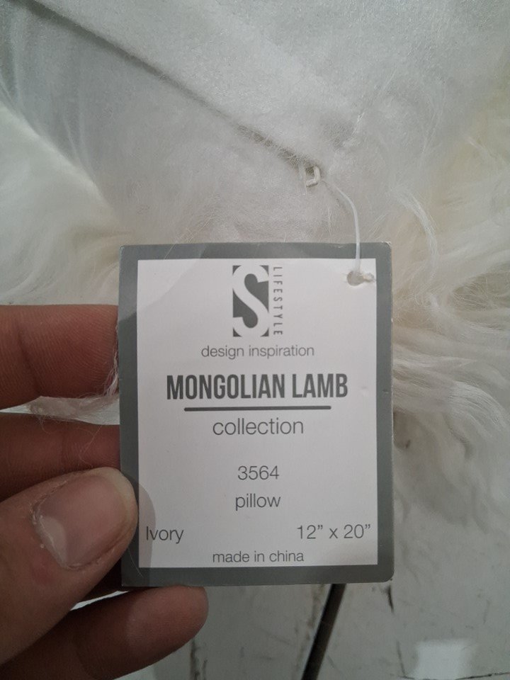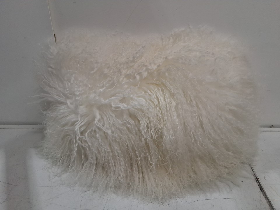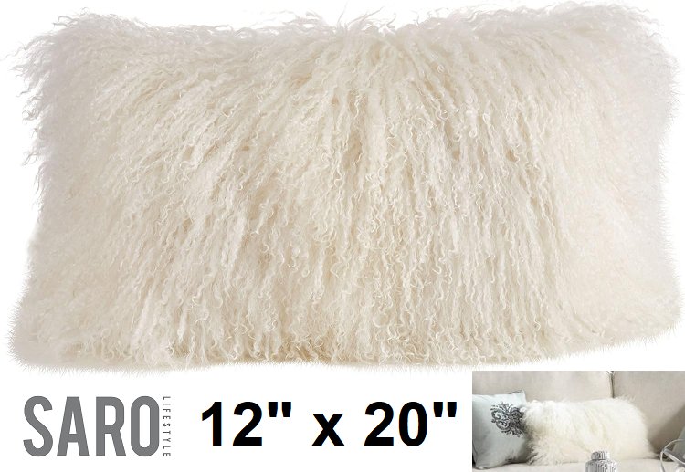 SARO LIFESTYLE 100% Wool Mongolian Lamb fur throw pillow - 12" x 20" - ivory (style: 3564)