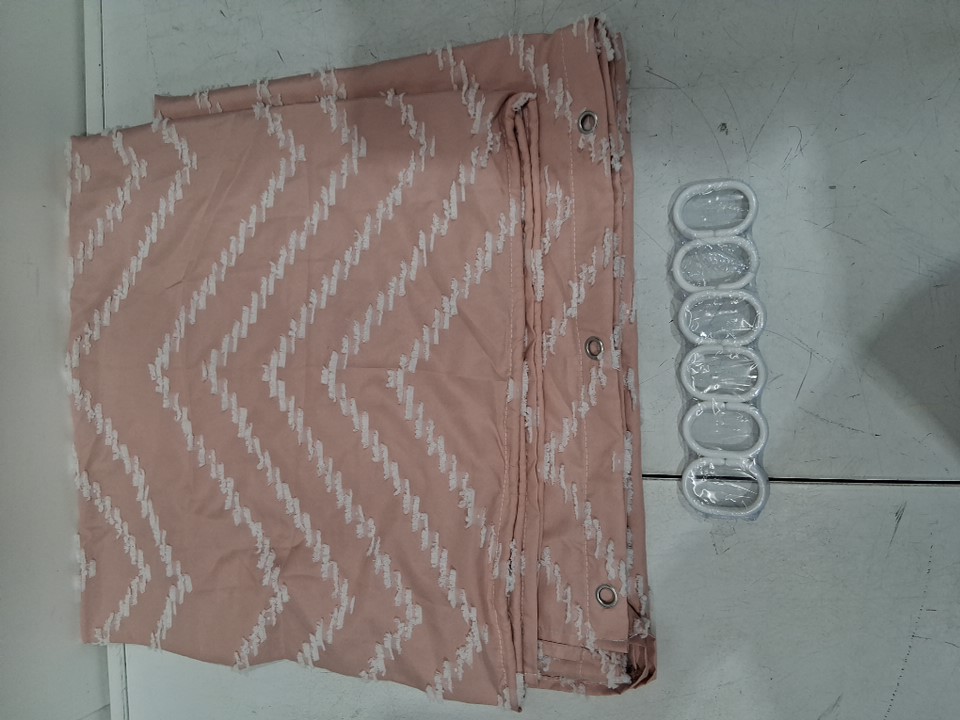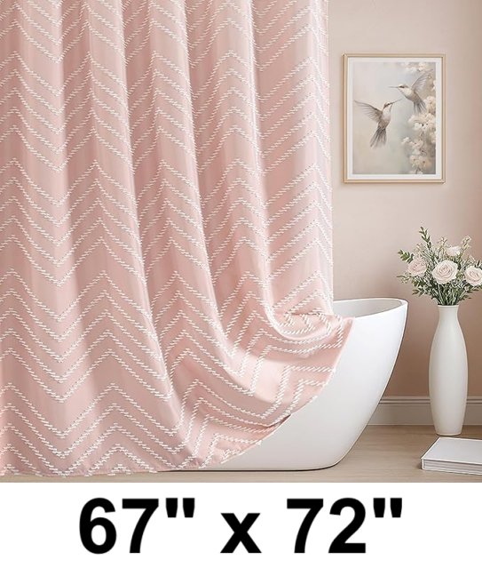 textured/tufted chevron shower curtain with hooks- 67" x 72" - blush pink/white