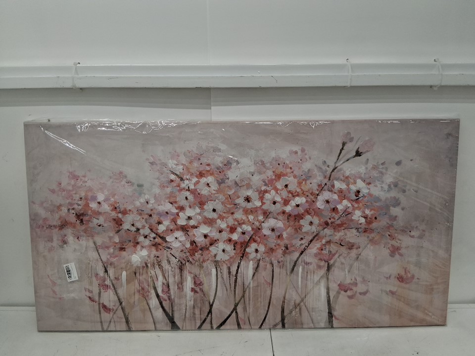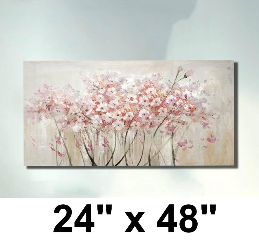 Floral Oil Painting Canvas Wall Art - 24" x 48" - Pink/White