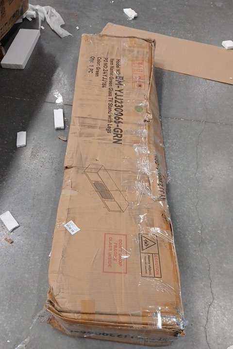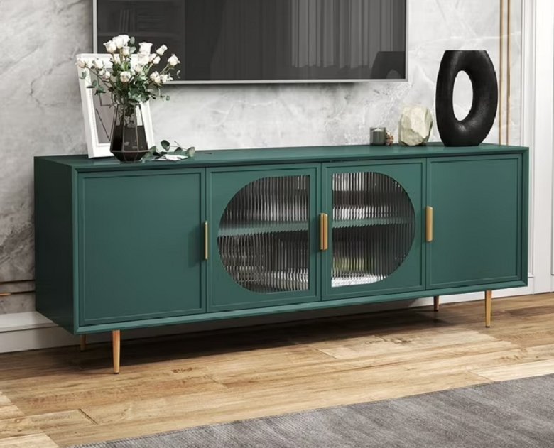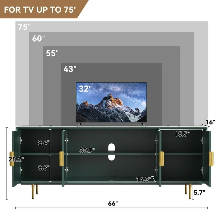 HLR TV up to 75" Stand for Living Room, Entertainment Center with Glass Storage Cabinet - 66" - Green (model: bm-yjj230066-grn)