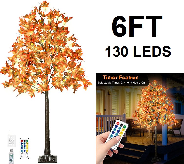 ARTIFICIAL MAPLE TREE AUTUMN DECOR WITH 130 LEDS, REMOTE CONTROL - 6FT