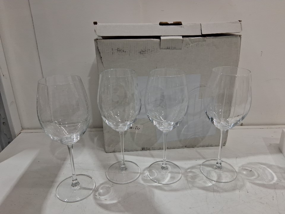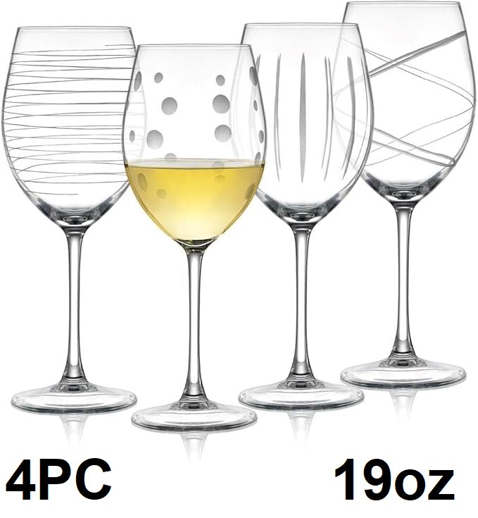 4pc joeyan hand blown etched stemmed wine glasses - 19oz - clear