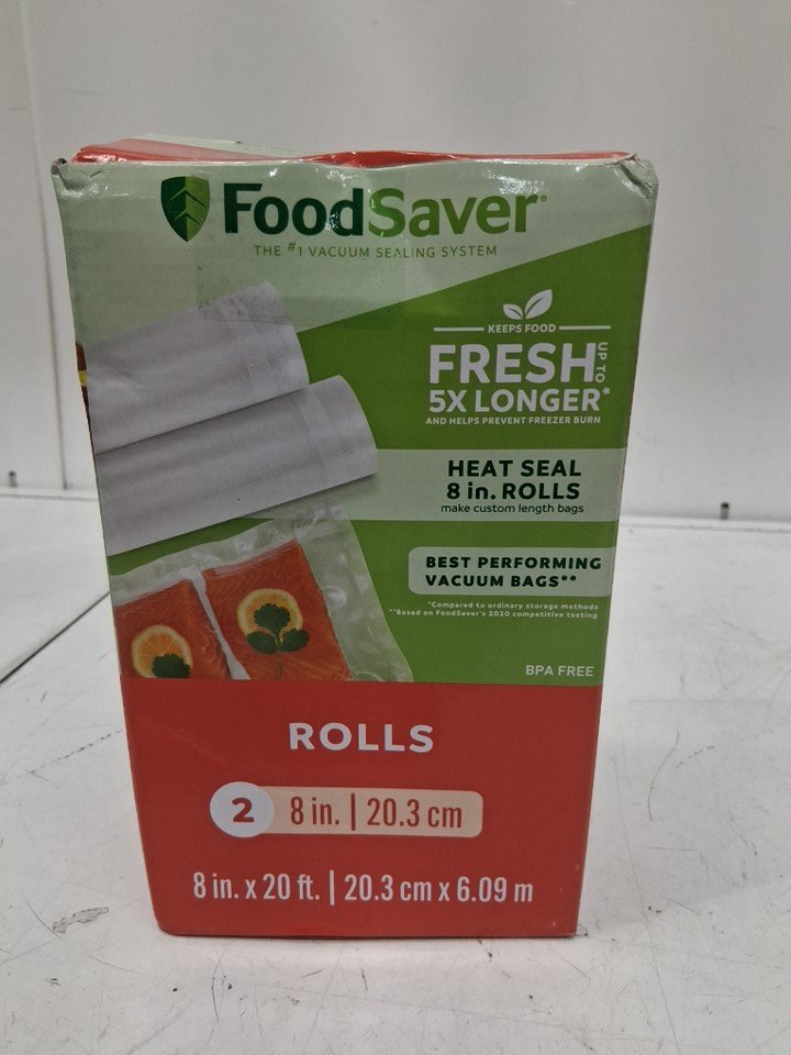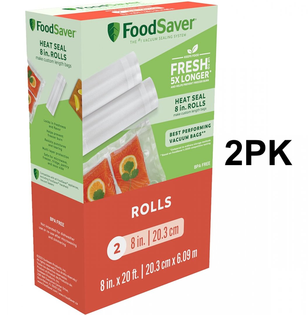 2PK FOODSAVER Vacuum Sealer Rolls for Custom Length Airtight Food Storage and Sous Vide Bags - 8" x 20' - Clear (MODEL: 2144604)