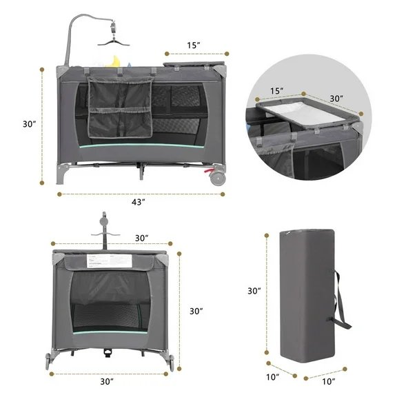 ciesmsi pack and play portable crib with carrying bag - 43" x 30" x 30" - dark grey (model: hy-8036)