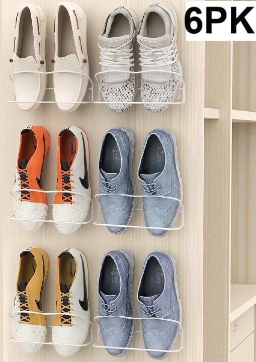 6pk PrimZooty Wall Mounted Shoe Rack with Sticky Hanging Strips - white