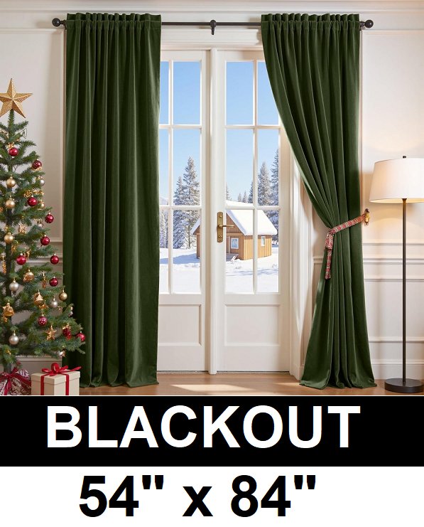 (2 panel) velvet soft rod pocket insulate blackout curtains - 54" x 84" - green
