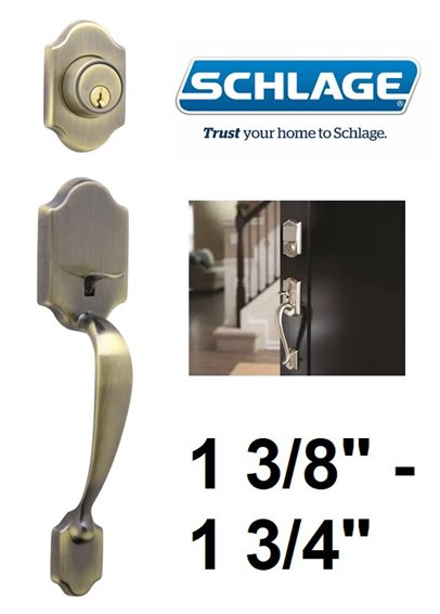 allegion schlage outside Paris exterior handle set - 1 3/8" - 1 3/4" door range - antique brass (model: JH58 PRS 609)