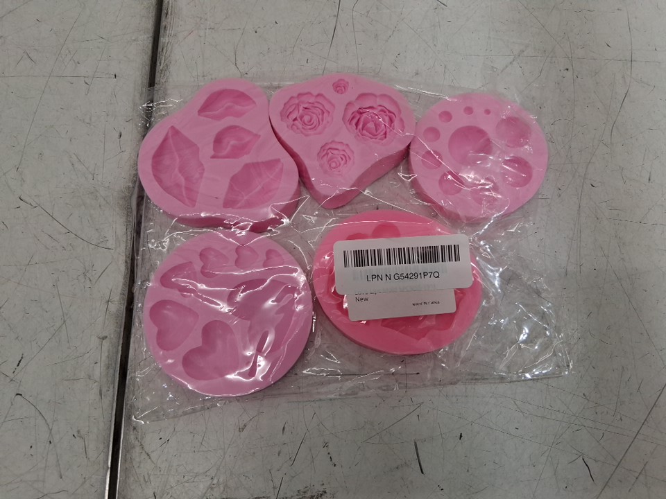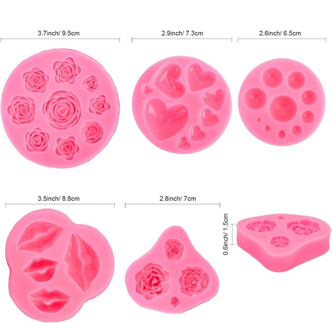 5pc valentines day candy and chocolate fondant molds - assorted sizes - PINK
