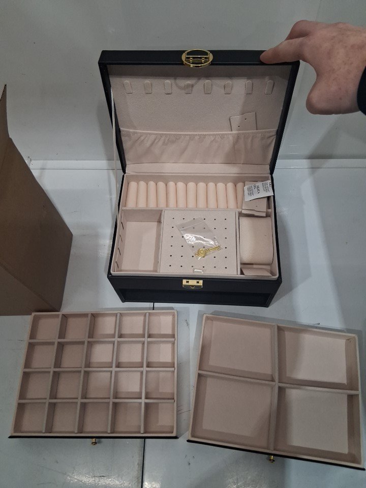 Women's Sycaron Large Leather Jewelry Box with lock and key - Black
