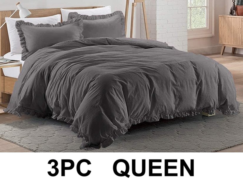 3PC Utopia Bedding Ruffle Duvet Cover And Pillow Shams - Queen - Grey (Model: 135406)