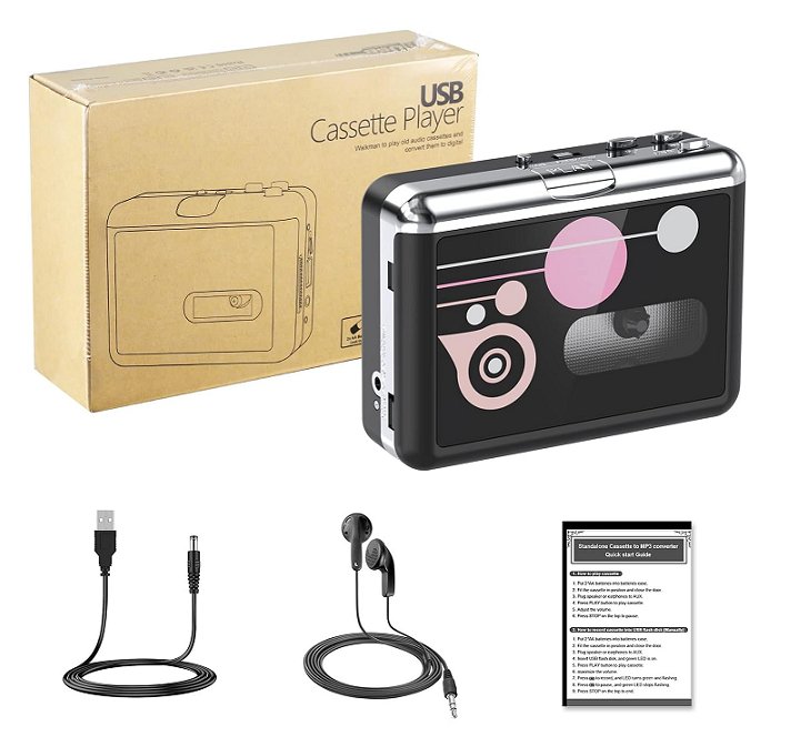 digitnow cassette player with portable usb cassette to mp3 converter with earphones - black (model: br608-ca-s)