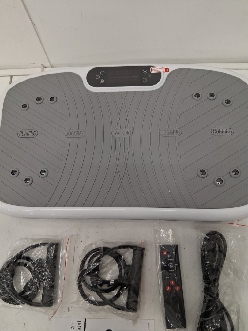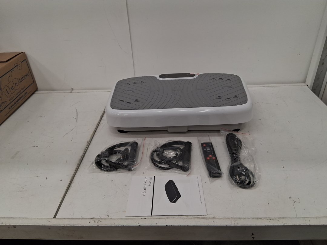 Unbranded Vibration Plate with Tension Bands and remote - White/Grey
