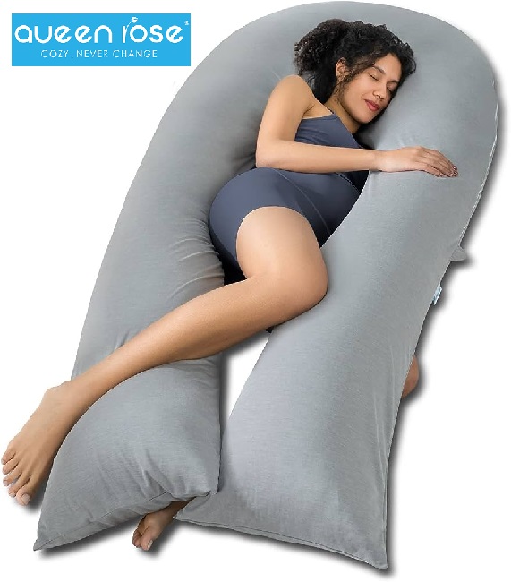 QUEEN ROSE EXTRA LONG U-SHAPED PREGNANCY PILLOW - GREY