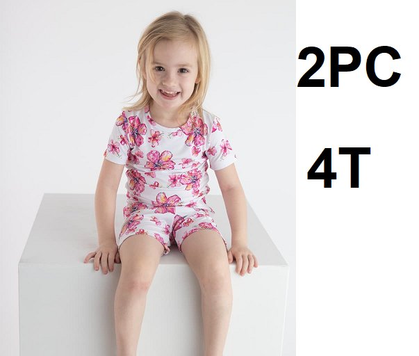 GIRLS 2PC Hibiscus Kiss Short Pajamas - 4T - PINK/WHITE
