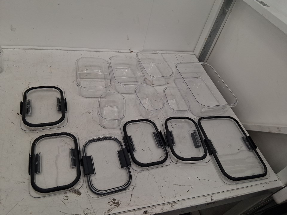 Please note item has some stains showing previous use and also has some scuffing/surface cracks on almost all containers (see photos for reference). This is supposed to be a 18pc set but we have only 13pc, see photos for whatever is included.