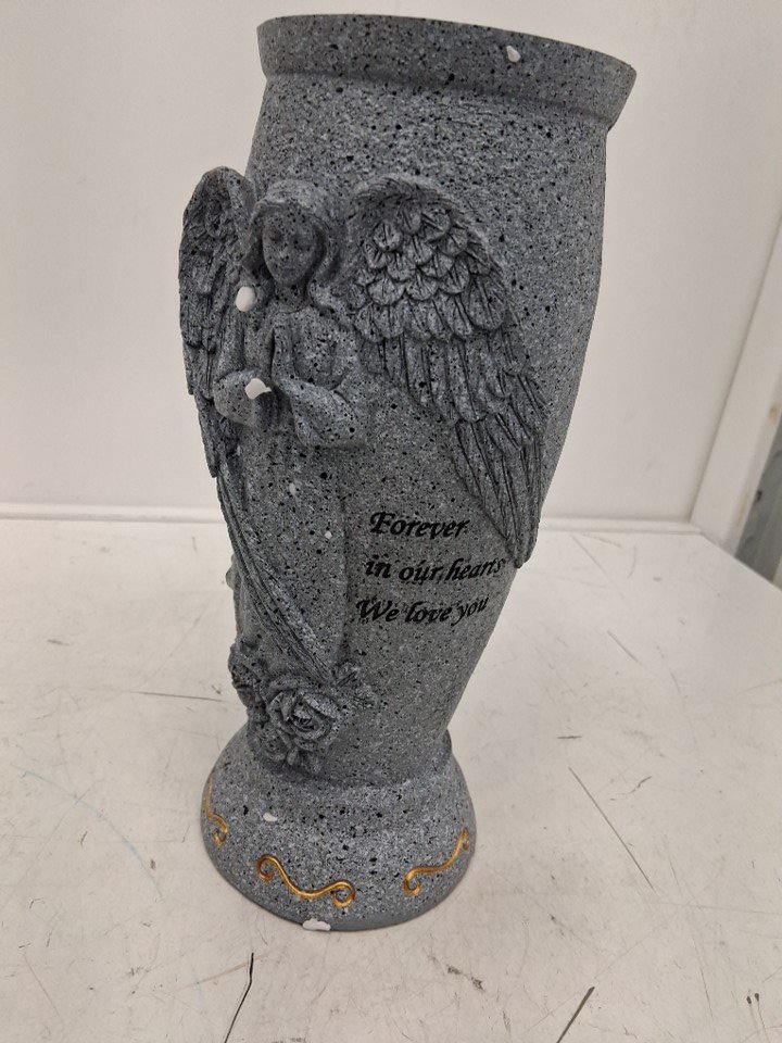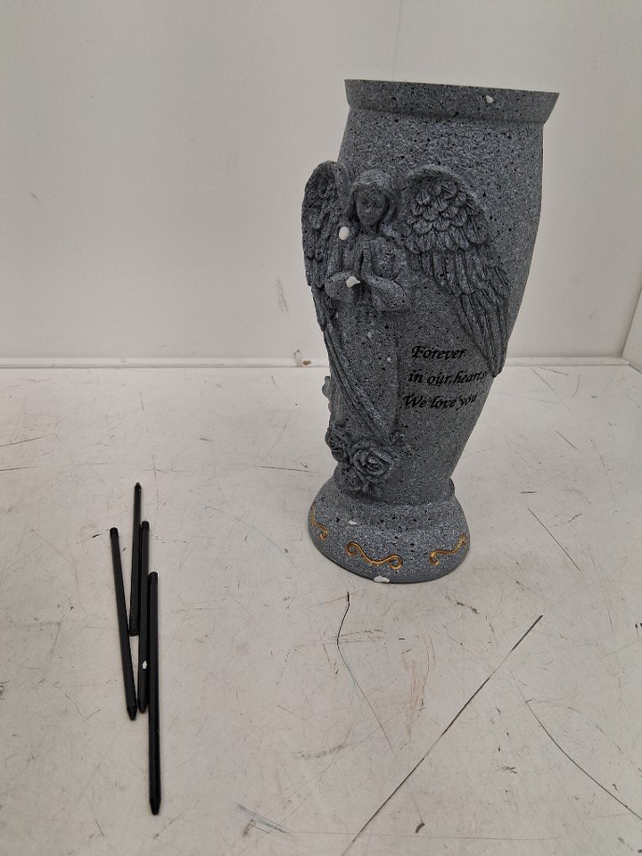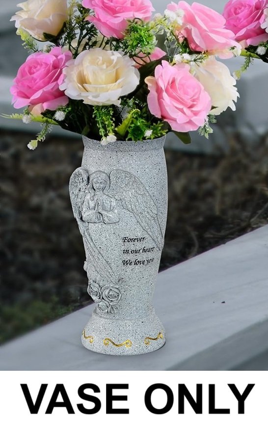 XONOR Memorial Grave Angel Vase for Artificial Flowers WITH GROUND SPIKES - 9.8" H - GREY