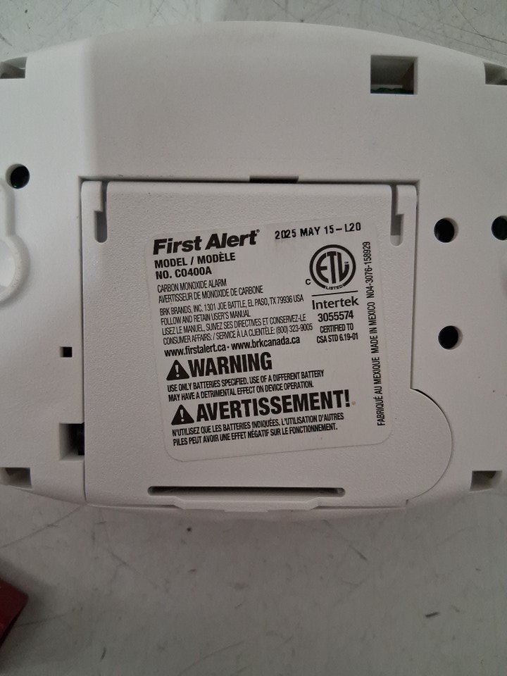 first alert Battery Powered Carbon Monoxide Alarm - white (model: c0400a)