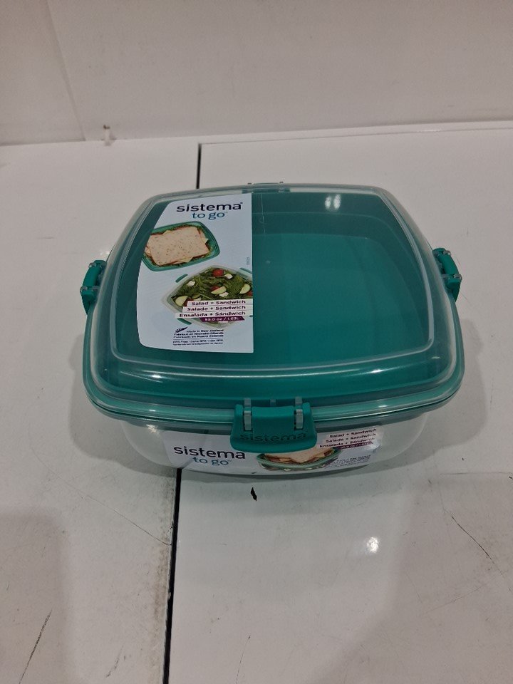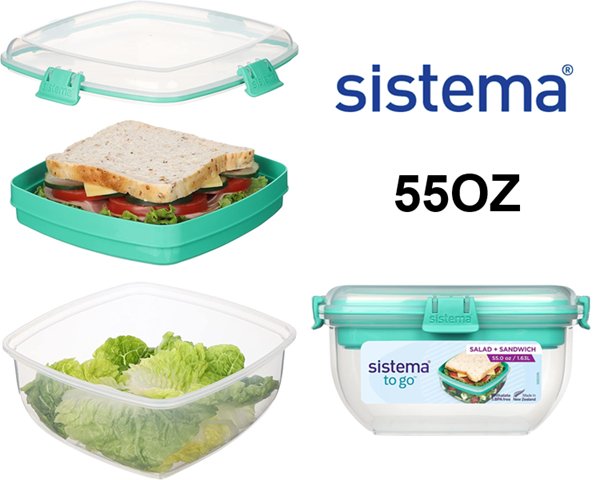 SISTEMA SALAD AND SANDWICH TWO COMPARTMENT TO GO FOOD STORAGE CONTAINER -55OZ - GREEN