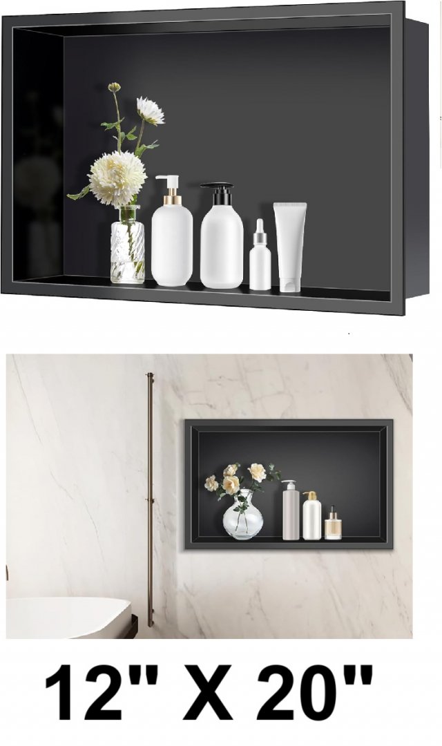 AXOTEXE Stainless Steel Shower Bathroom WALL Niche No Tile Needed - vertical/horizontal - 12" x 20" - black