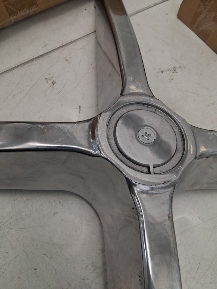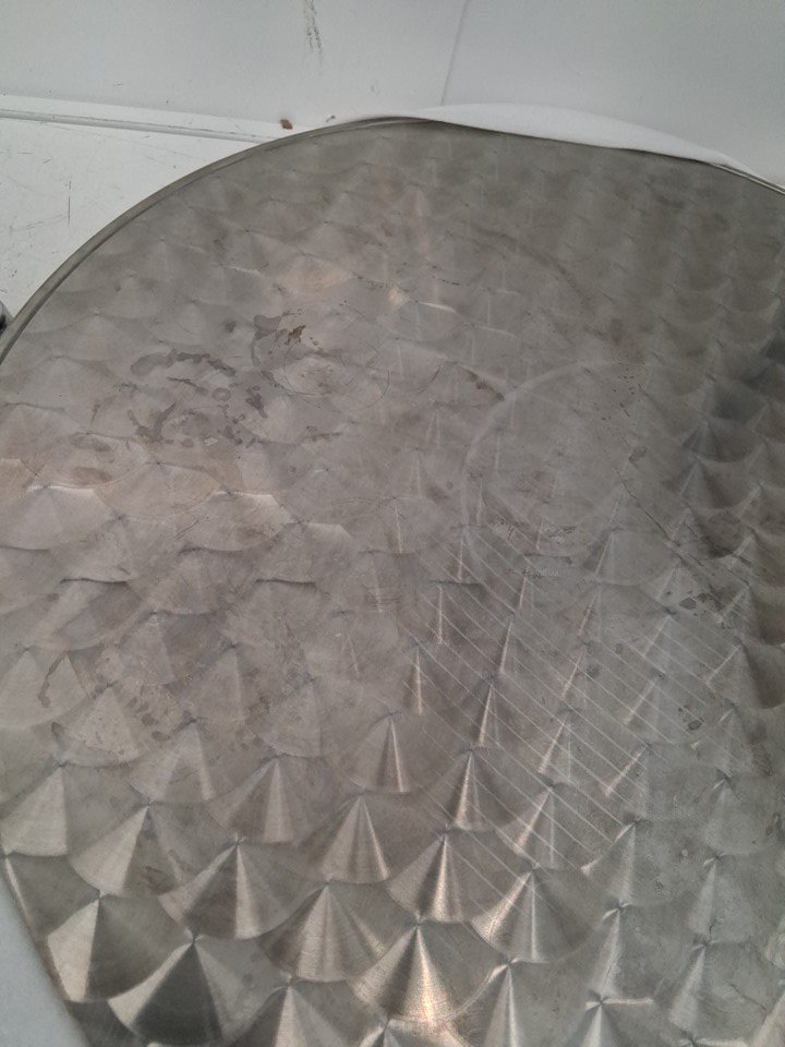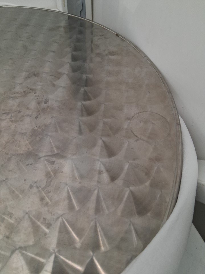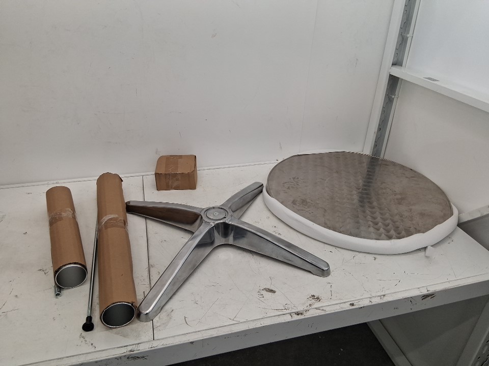 Please note the tabletop has light marks possibly from a liquid spill showing it was lightly used and there is minor scuffing on the base (see photos for reference).