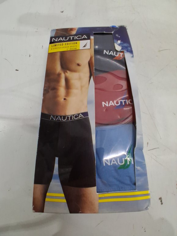 3PK MENS NAUTICA Classic Underwear Cotton Stretch Boxer Brief - LARGE - RED/BLUE/NAVY